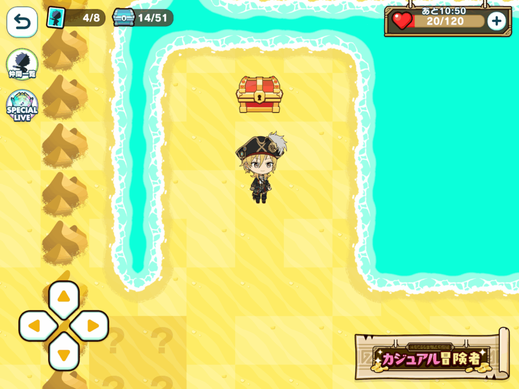このエリアにはキャラ1名と、奥の赤い宝箱にスカウトチケットがあります。