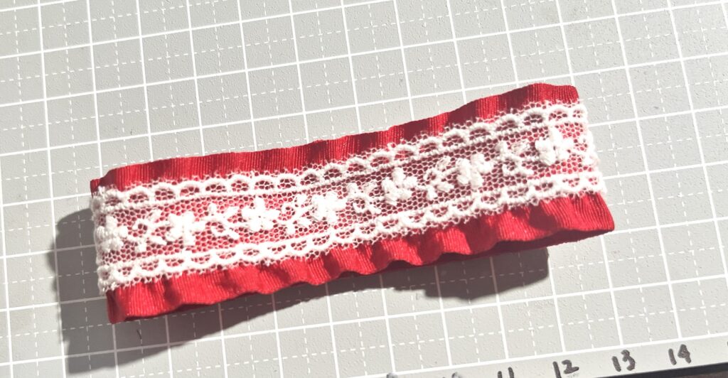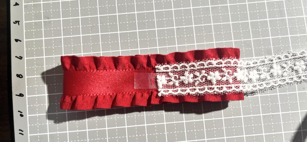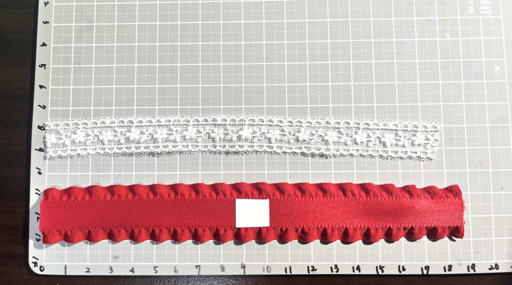 画像の後ろ少し余ってますが、これは私が間違ってレースを18cmで切ったからです。