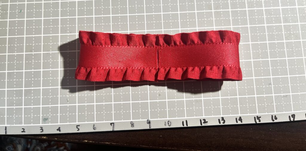 一番真ん中の両フリルリボンに両面テープ(ずれ防止)を貼って