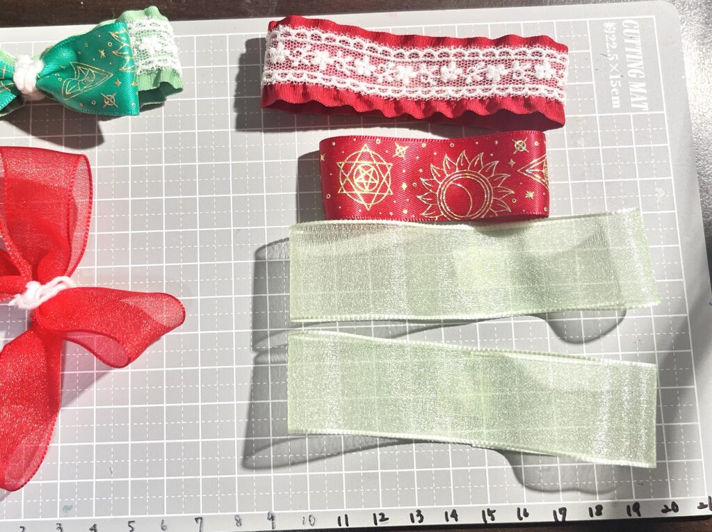 5cmぐらいのゴムとか紐とか用意します。リボンの数だけ、今回は4本。