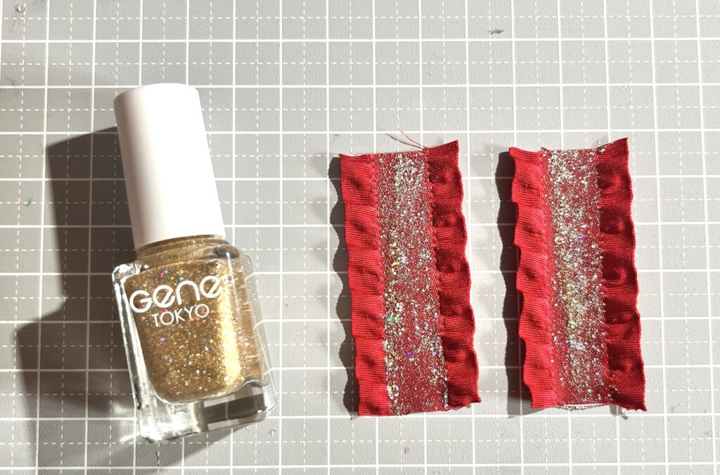 マニキュア(ゴールド)でフリル以外をぬって乾かします。