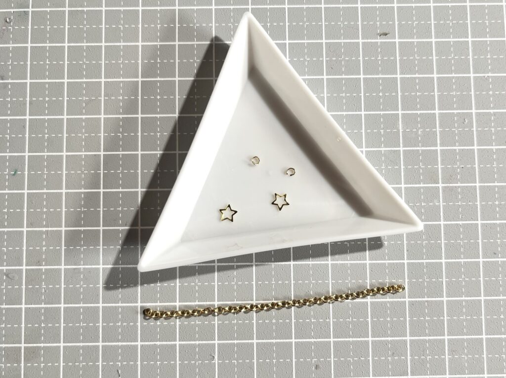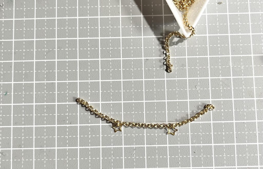 チェーンも欲しいなと思ったので7cmぐらいのものに☆のパーツをくっつけてみます。