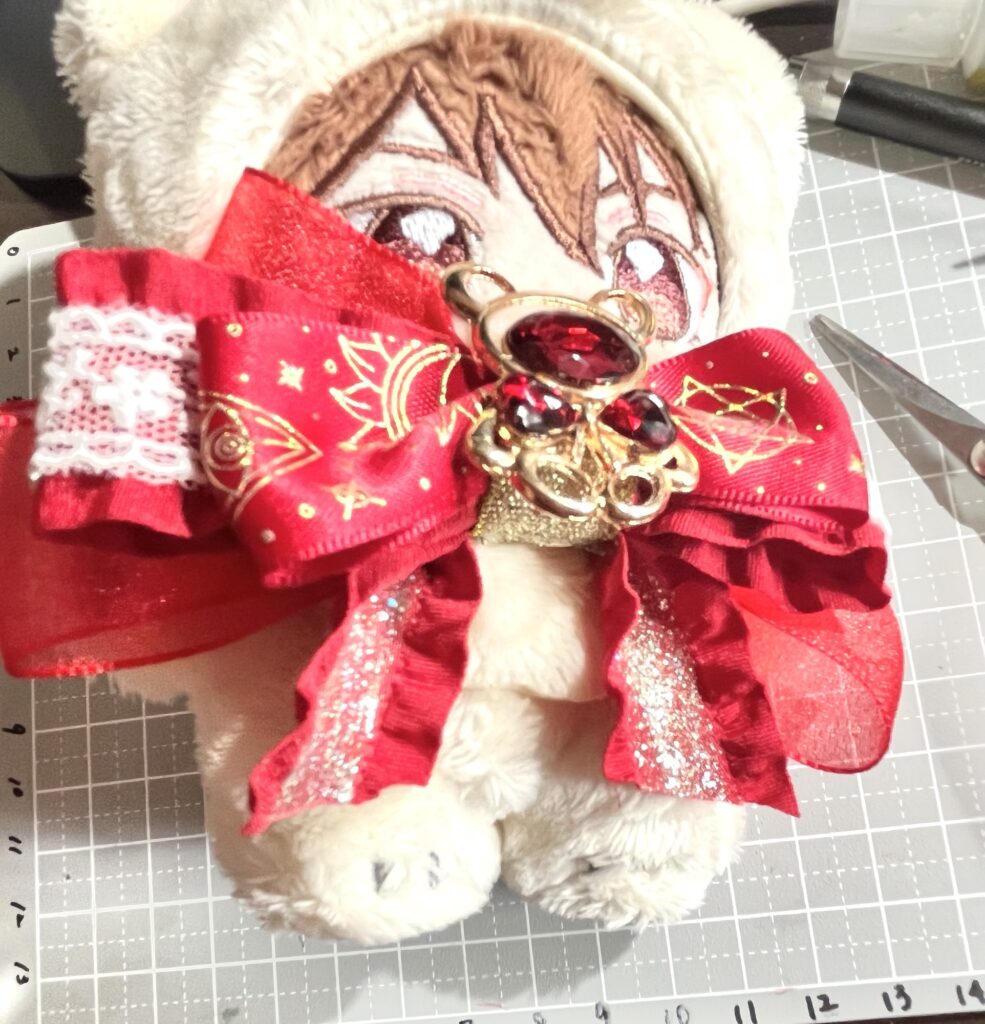 推しの色が各種そろっているので、ぬいの服や今回のリボンに使ったりとか…